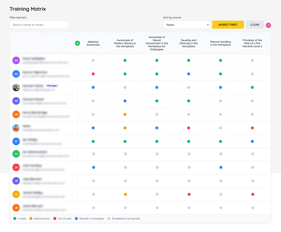 Get a real-time view of staff training and compliance in one simple dashboard — no spreadsheets, no manual tracking.