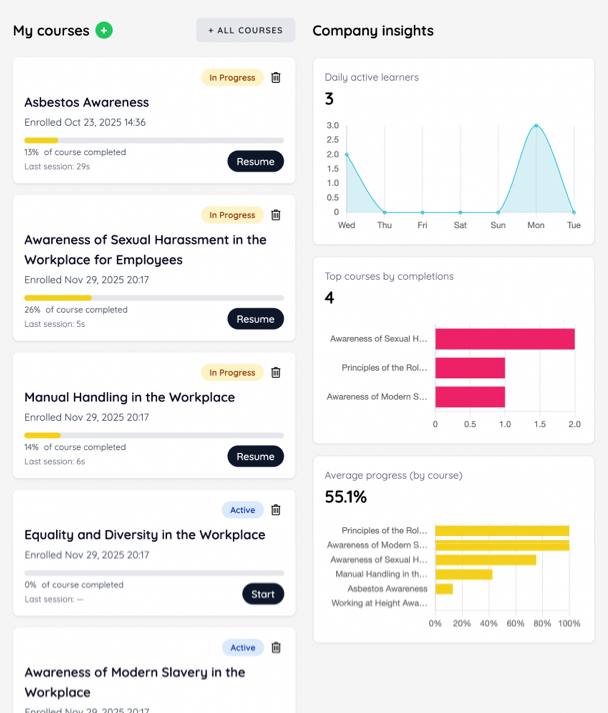 Assign courses instantly to individuals, teams, or your entire organisation - keeping your workforce compliant without the admin burden.